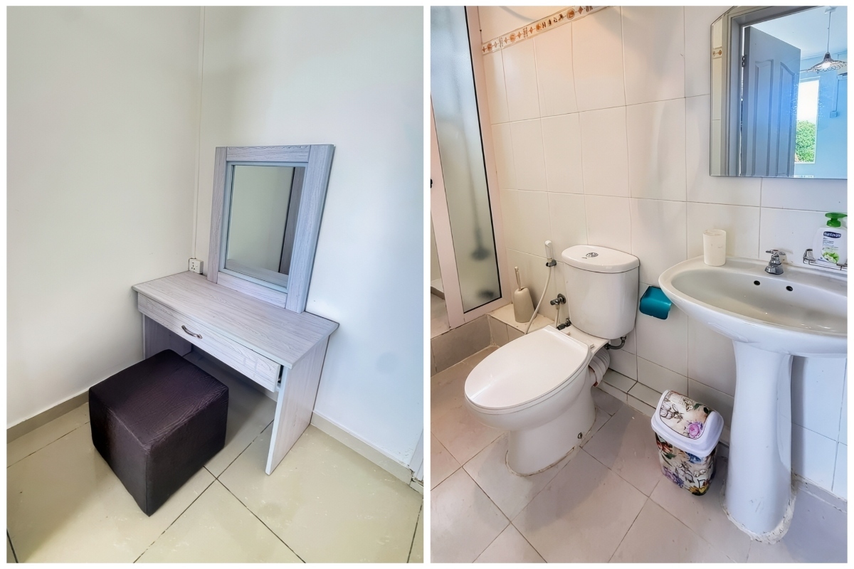 The apartment is a modern living space available to rent for Rs 35,000 per month, which includes water and wifi. It’s on the third floor and features three large bedrooms and two bathrooms. The open living and dining area is great for gatherings, and the fully equipped kitchen is ideal for cooking. You can relax on the lovely terrace or take a swim in the shared pool, which is perfect after a day at the beach.
