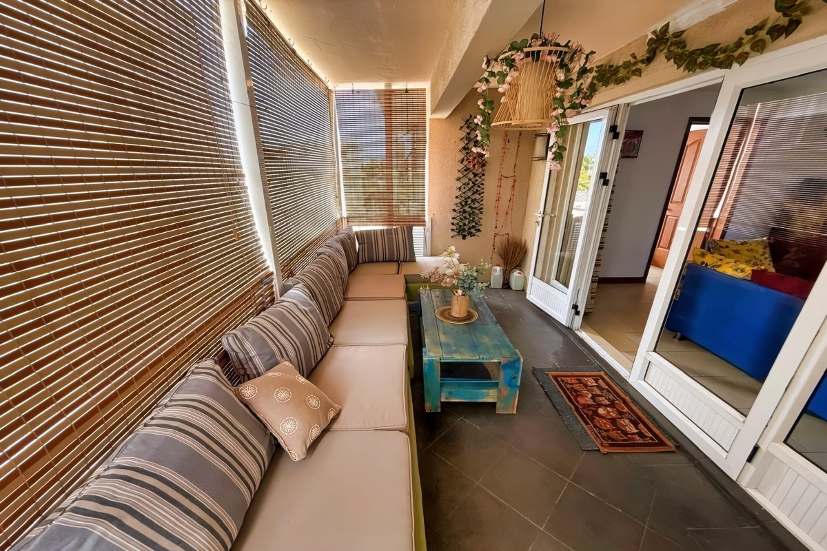 Step inside and discover the allure of spacious living with three generously sized bedrooms, including a sumptuous ensuite. The apartment boasts two contemporary bathrooms and two additional toilets, enhancing your comfort and ease. An open plan living and dining area beckons, perfect for both entertaining guests and unwinding in style. The fully equipped kitchen makes meal preparation an effortless delight, while a charming terrace invites you to enjoy fresh air and captivating views. For added leisure, indulge in the refreshing pool, a perfect escape for relaxation.