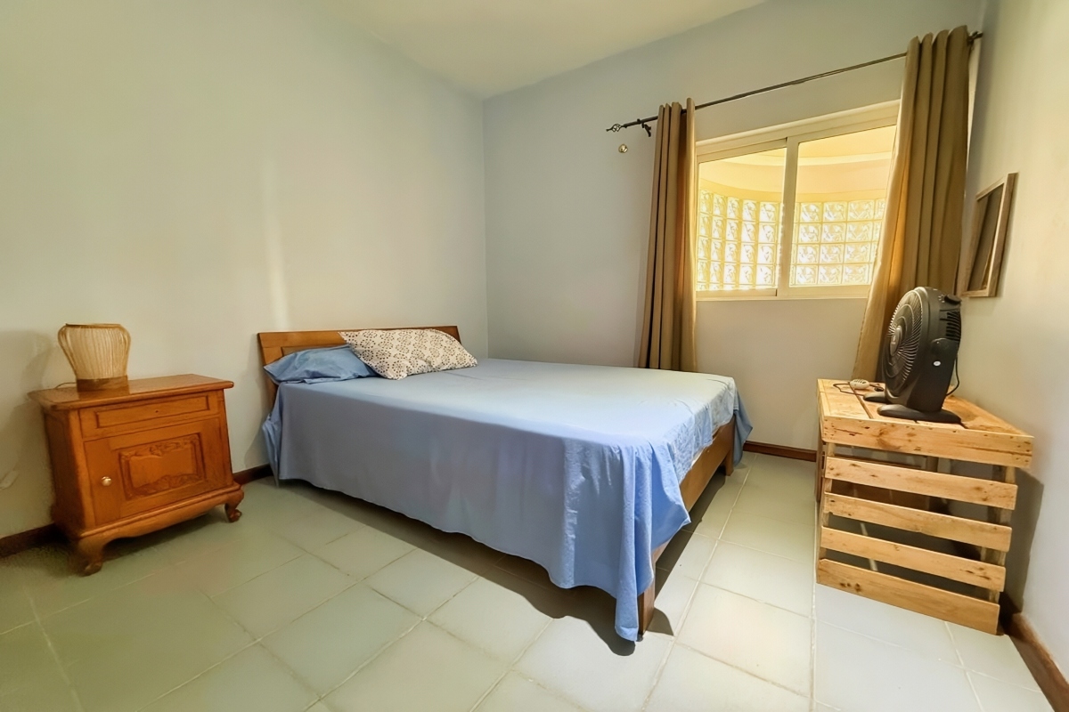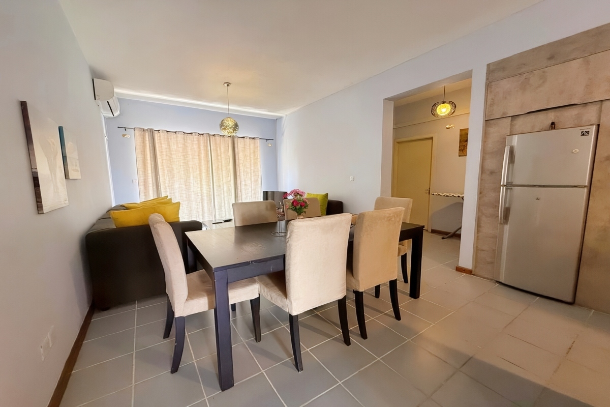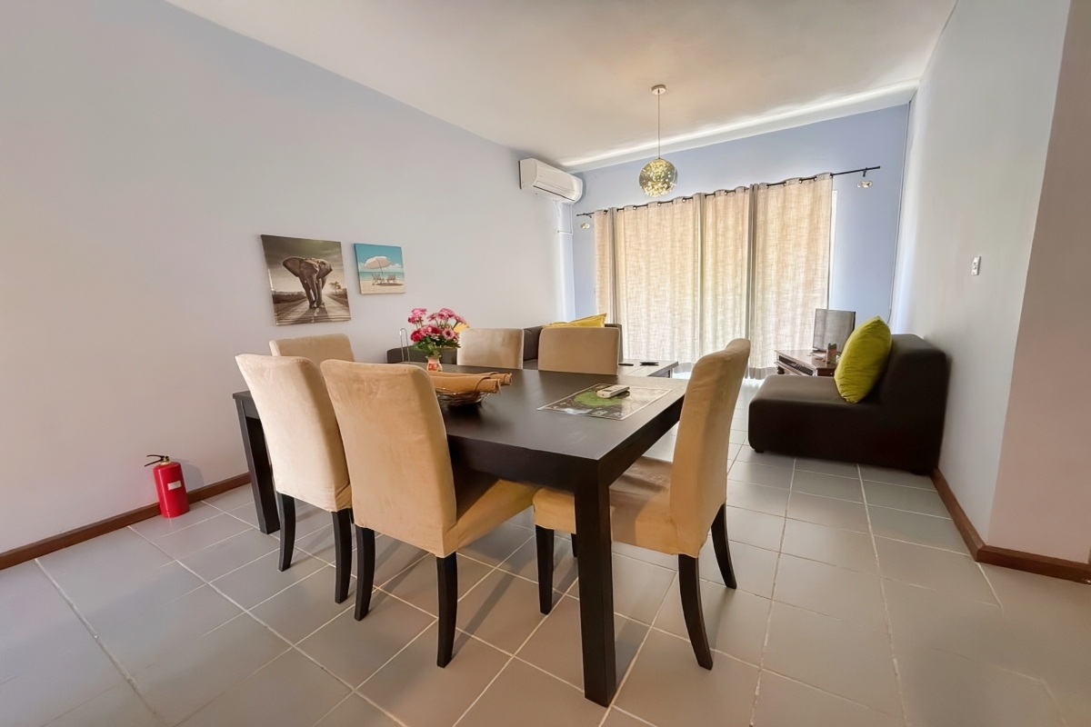 Beyond the apartment’s walls, additional amenities elevate the living experience. Residents have access to a shared pool, perfect for leisurely afternoons and unwinding from the day’s activities. A designated parking space ensures your vehicle is secure, while the beautifully maintained garden adds a touch of nature to your surroundings. The apartment is professionally managed by a syndic, providing a seamless and hassle-free living experience. This residence is ideal for couples, small families, or individuals seeking a serene retreat in Flic en Flac, offering everything needed for a comfortable and enjoyable stay.