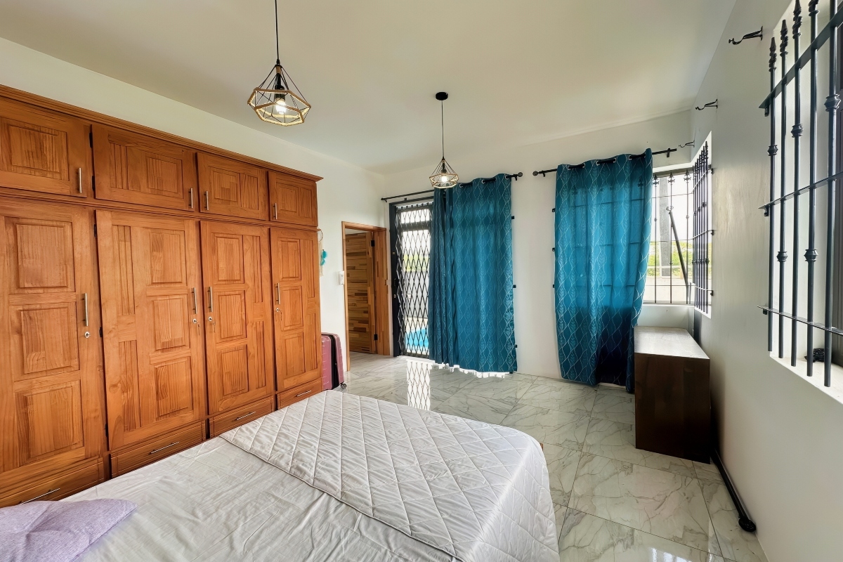 Venture to the luxurious bedrooms, each serving as a private retreat with generous space, plush carpeting, and ample closets. The master suite is a true sanctuary, boasting a walk-in closet and an ensuite bath, perfect for relaxing after a long day. Outside, enjoy your private oasis with a sparkling swimming pool, beautifully enclosed yard, and a spacious patio perfect for al fresco dining or summer barbecues. Available for long-term rental at 59,000 MUR per month, this includes weekly pool maintenance. Don’t miss the opportunity to make this dream home your reality!