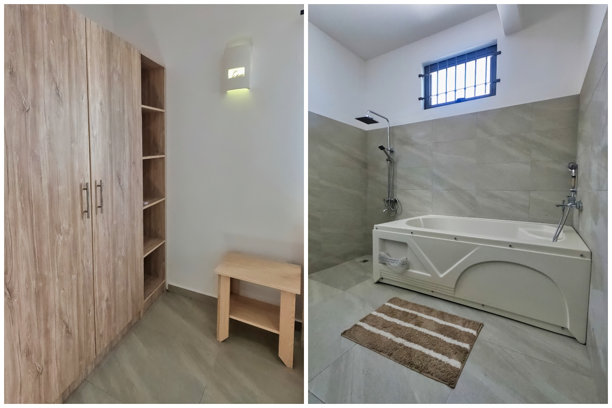 Additional amenities enhance the villa’s appeal, ensuring residents have access to everything they need for a modern lifestyle. The property includes a garage, visitors’ parking, and comprehensive security measures, such as CCTV cameras and a 24/7 security officer. Residents will also benefit from a syndic management service. While the gym and pool facilities are set to be operational in one month, they promise to add further leisure options for the community, making this villa a truly desirable rental option in Grand Baie.